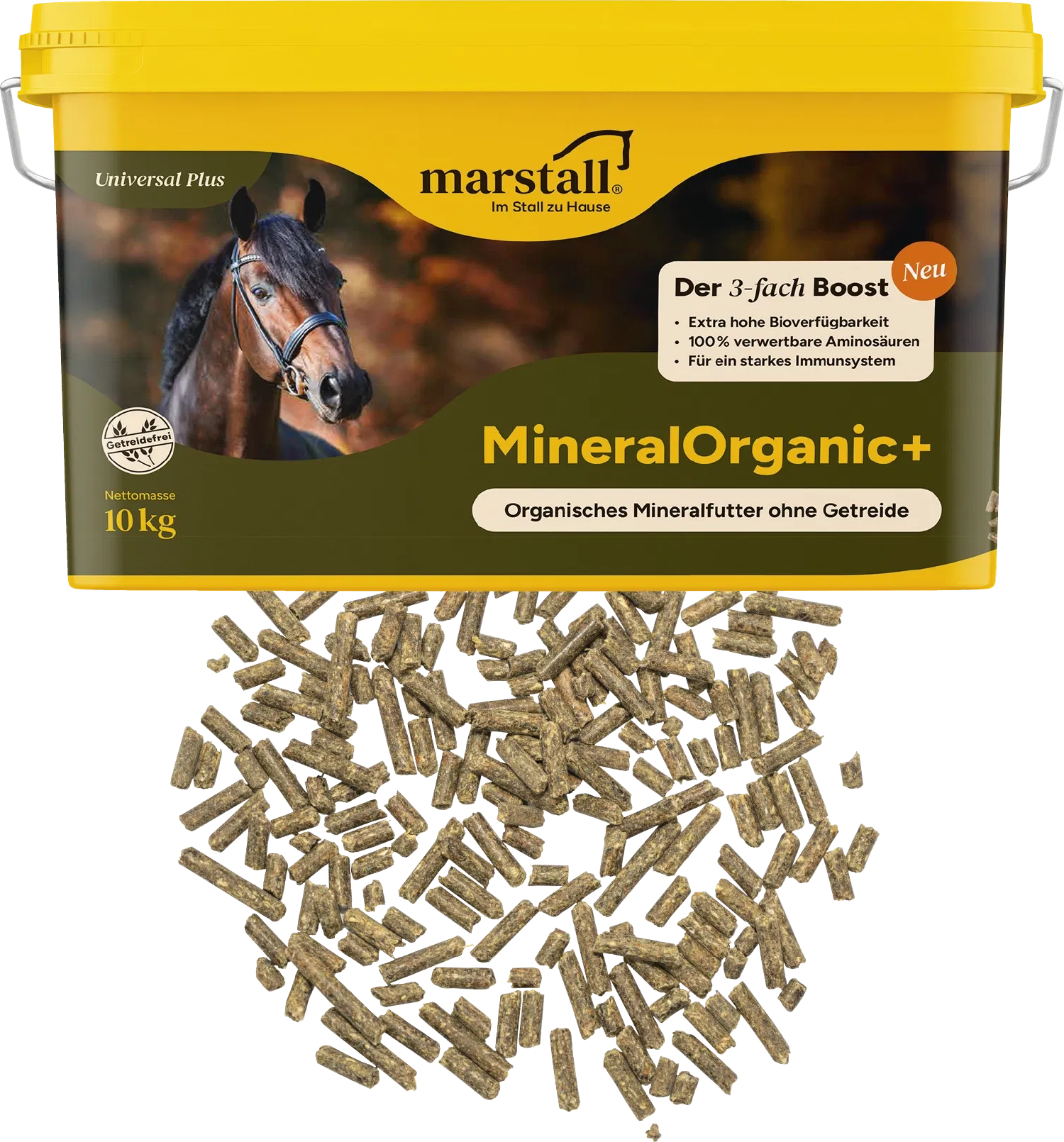 Du möchtest dein Pferd das ganze Jahr über optimal versorgen, ohne den Organismus mit unnötigen Füllstoffen zu belasten? Mit dem Marstall Mineral Organic+ entscheidest du dich für eine wertvolle organische Nährstoffquelle. Für die leckere und innovative Rezeptur wurde bewusst auf Getreide und Melasse verzichtet, um deinem Pferd eine praktische Ergänzung zum täglichen Raufutter zu bieten.
