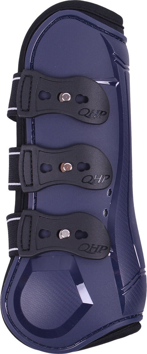 Diese sportlichen Hartschalen-Gamaschen in stilvollem Dunkelblau wurden entwickelt, um die Sehnen an den Hinterbeinen deines Pferdes zuverlässig vor Schlägen und Stößen zu schützen. Sie bieten dank intelligenter Materialtechnologie eine ideale Kombination aus maximalem Schutz und effektivem Hitzemanagement.
