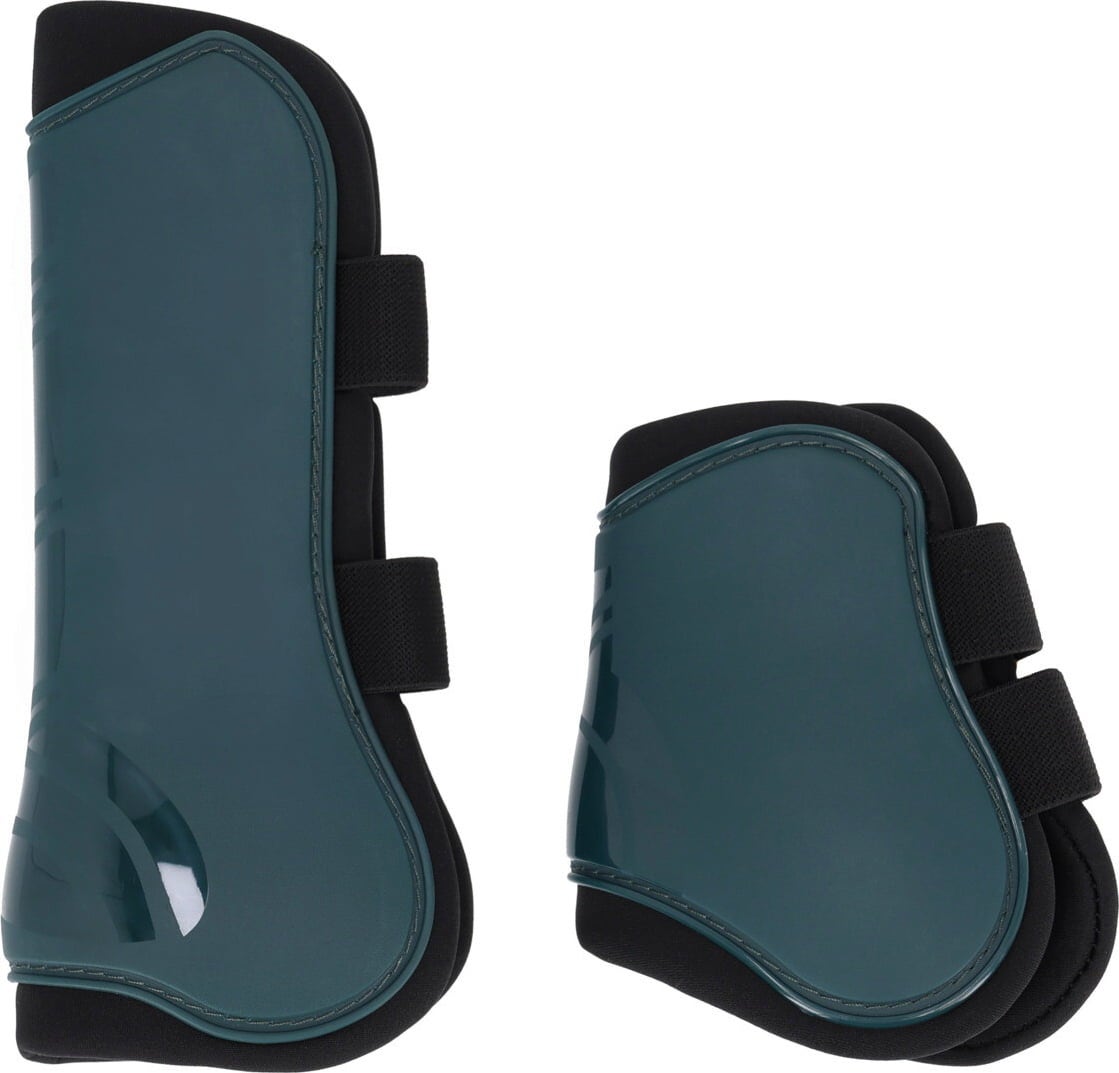 Mit diesem kompletten Gamaschen-Set von QHP schützt du die empfindlichen Sehnen, die Vorder- und Hinterbeine deines Pferdes zuverlässig vor Stößen und Streifen. Das Set bietet dir zwei Gamaschen für die Vorderbeine und zwei Streichkappen für die Hinterbeine und sorgt damit für einen vollständigen Schutz während des gesamten Trainings.