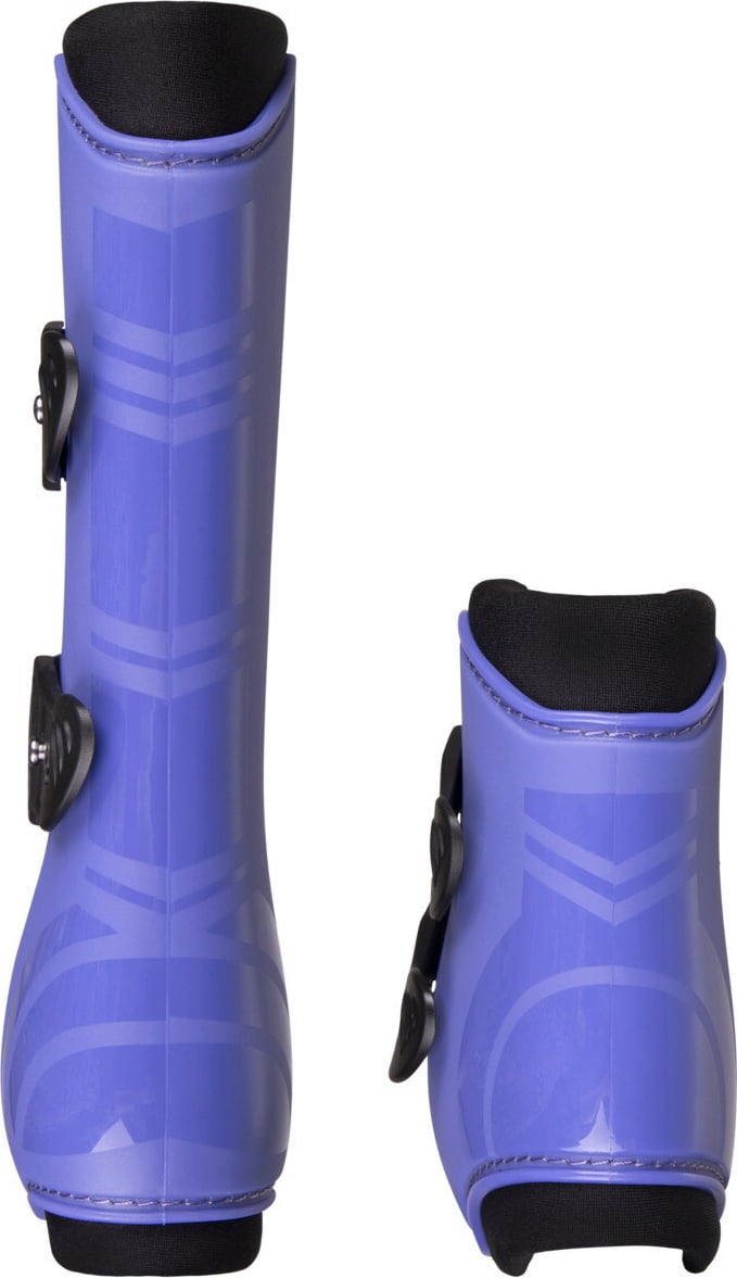 Die anatomisch geformten Protektoren bestehen außen aus einer robusten, harten Kunststoffschale (Polyurethan) in mattem Finish, akzentuiert durch glänzende Streifen für einen sportlichen Look. Für maximalen Komfort sorgt die Innenseite, die mit einem weichen Neoprenfutter ausgekleidet ist. Die Gamaschen sind außerdem besonders leicht und lassen sich dank der elastischen Schnellverschlüsse mühelos und in Sekundenschnelle anlegen und befestigen!