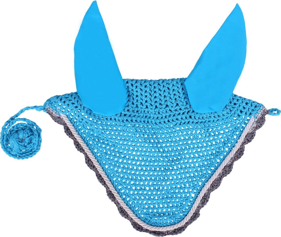 Die Ohren selbst sind aus einem elastischen Stoff gefertigt, der eine optimale und komfortable Passform garantiert, ohne zu drücken. Optisch überzeugt die Haube durch moderne, ansprechende Farben und eine stilvolle weiße Zierkordel am Rand. Für einen sicheren Halt kannst du die integrierte Schnur einfach zur Befestigung um die Kehle deines Pferdes verwenden.