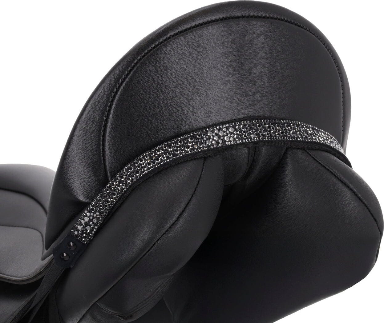 Die Kombination aus kleinen Glitzersteinen und größeren Kristallen fängt das Licht bei jeder Bewegung ein, was besonders in der Sonne oder unter dem Hallenlicht für einen tollen Effekt sorgt. Das Leder ist robust und gleichzeitig flexibel genug, um sich der Form deines Sattels sauber anzuschmieden. Ob für das nächste Turnier oder einfach, um im täglichen Training ein optisches Highlight zu setzen: Mit diesem Accessoire wertest du deinen Look im Handumdrehen auf, ohne dass es aufträgt oder beim Reiten stört.