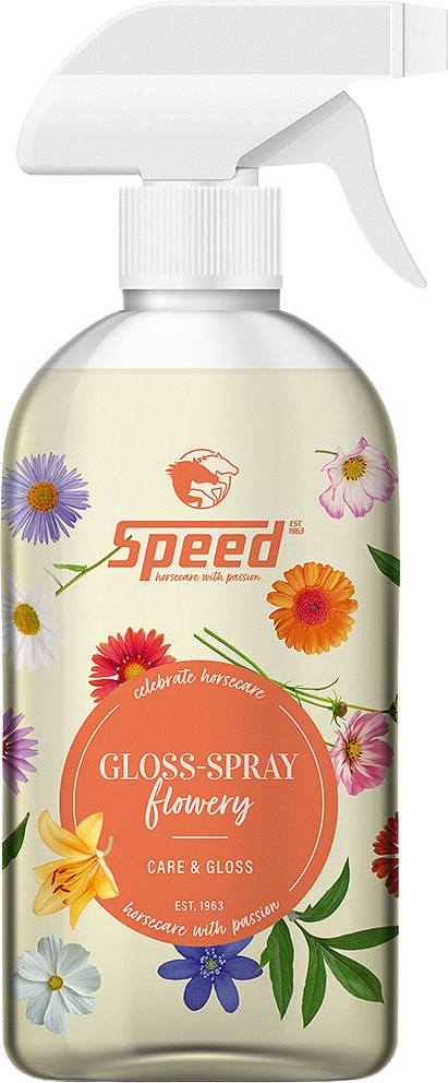 Das FLOWERY Gloss-Spray von SPEED bringt Mähne, Schweif und Fell deines Pferdes zum Strahlen. Mit seinem zarten Duft nach frischen Blumen sorgt es nicht nur für Pflege, sondern auch für ein rundum gepflegtes Erscheinungsbild. Staub und Schmutz haften kaum an, das Bürsten gelingt mühelos und das Haar erhält Volumen und Geschmeidigkeit. Ideal für die tägliche Pflege oder den großen Auftritt.