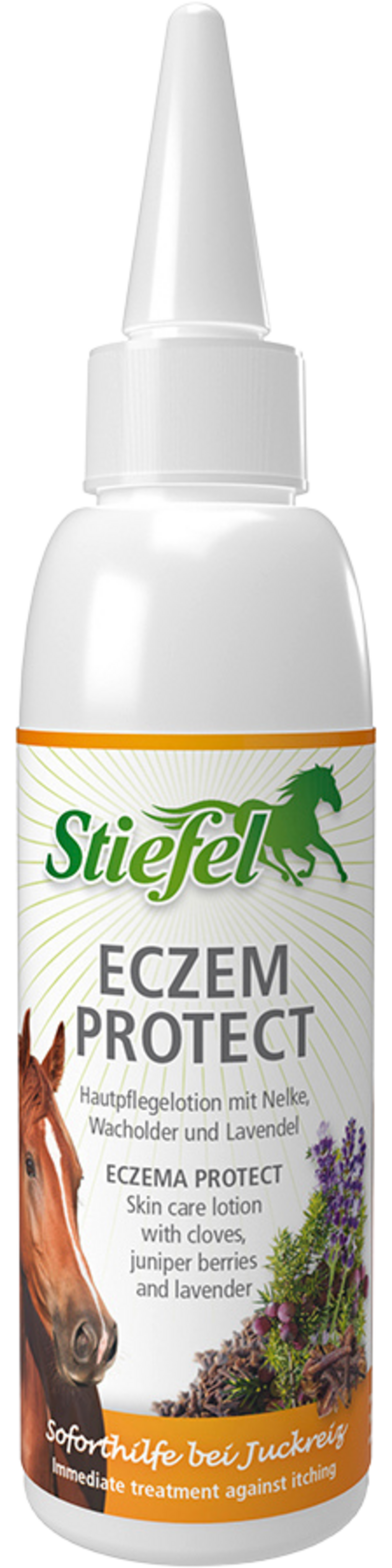 Stiefel Eczem Protect ist eine Hautpflegelotion mit Nelke, Wacholder und Lavendel zur Unterstützung bei Hautirritationen, Juckreiz oder Sommerekzem. Stiefel Eczem Protect kann trockene, empfindliche oder juckende Haut durch seine schützenden und vitalisierenden Wirkstoffe intensiv unterstützen und pflegen. Zudem kann Stiefel Eczem Protect zur schnelleren Regeneration irritierter Haut beitragen. Stiefel Eczem Protect kann ebenfalls zur Behandlung von Sommerekzem eingesetzt werden.