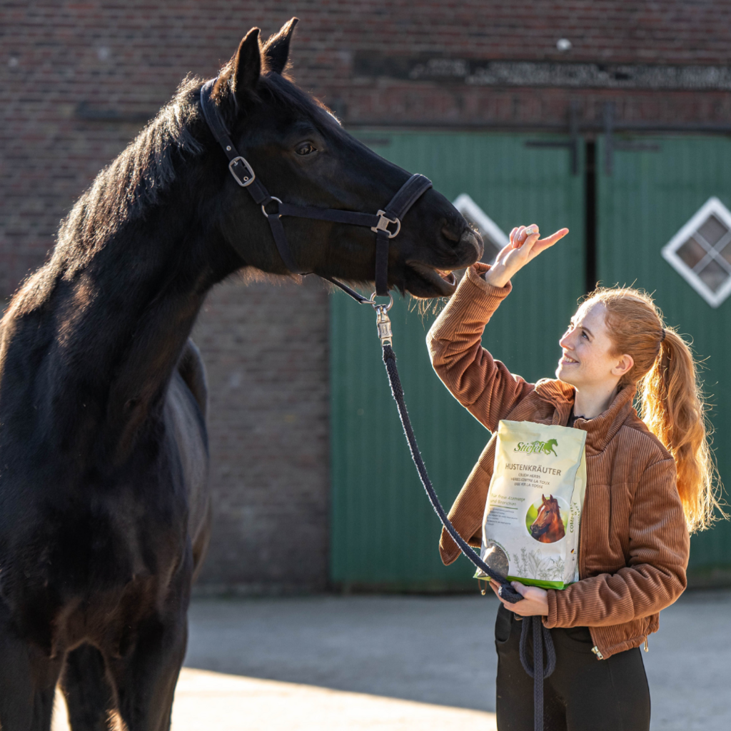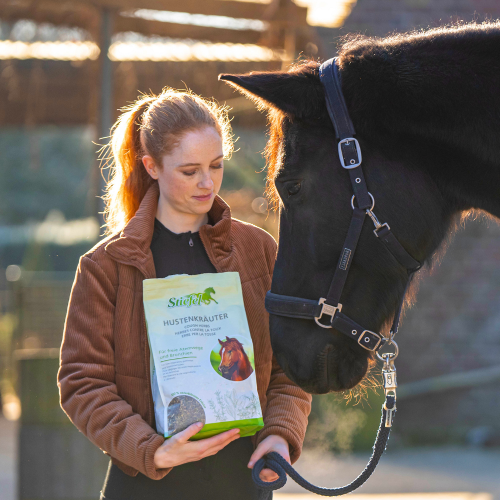 Stiefel Hustenkräuter sind eine speziell ausgewählte, naturbelassene Kräutermischung zur Unterstützung von Atemwegen und Bronchien bei haltungs- und fütterungsbedingter Beanspruchung der Atemwege. Die enthaltenen Kräuter können sich positiv auf den Atmungsapparat auswirken und sind auch zur längerfristigen Gabe geeignet.