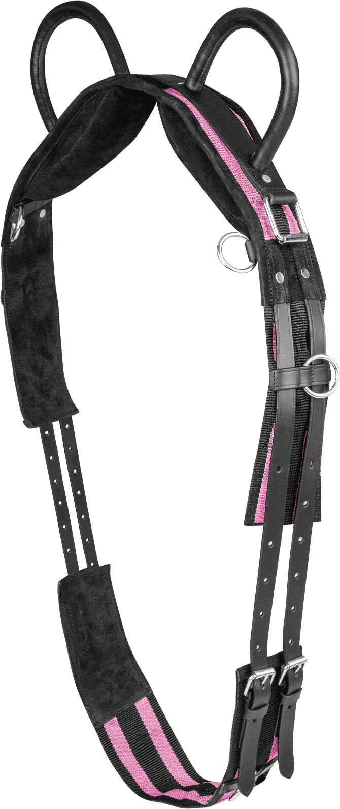 Zudem verfügt der Gurt über sechs robuste Ringe, an denen du verschiedene Hilfszügel befestigen kannst, um das Training individuell anzupassen. Praktisch sind auch die integrierten Rechteckringe, die es dir erlauben, bei Bedarf Bügelriemen einzuschnallen.