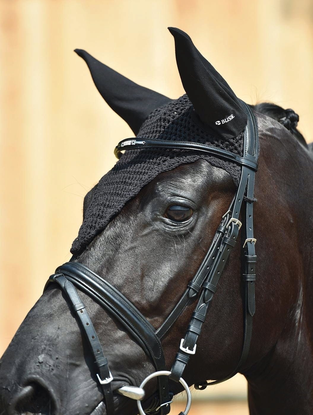 L’élastique à la pointe de la partie en coton, à fixer à la muserolle, garantit une bonne tenue du bonnet, qui ne bougera pas sur le front du cheval.