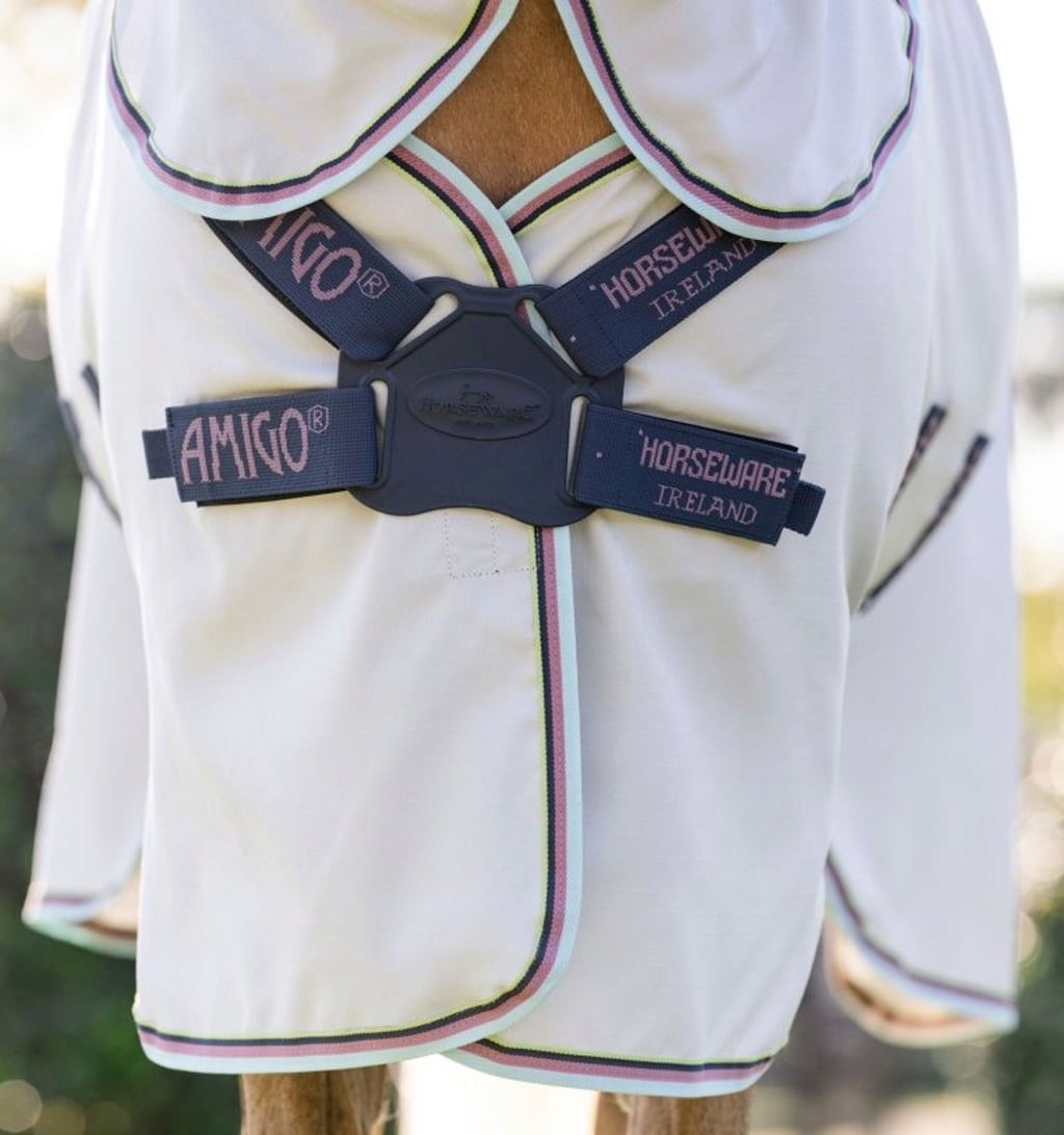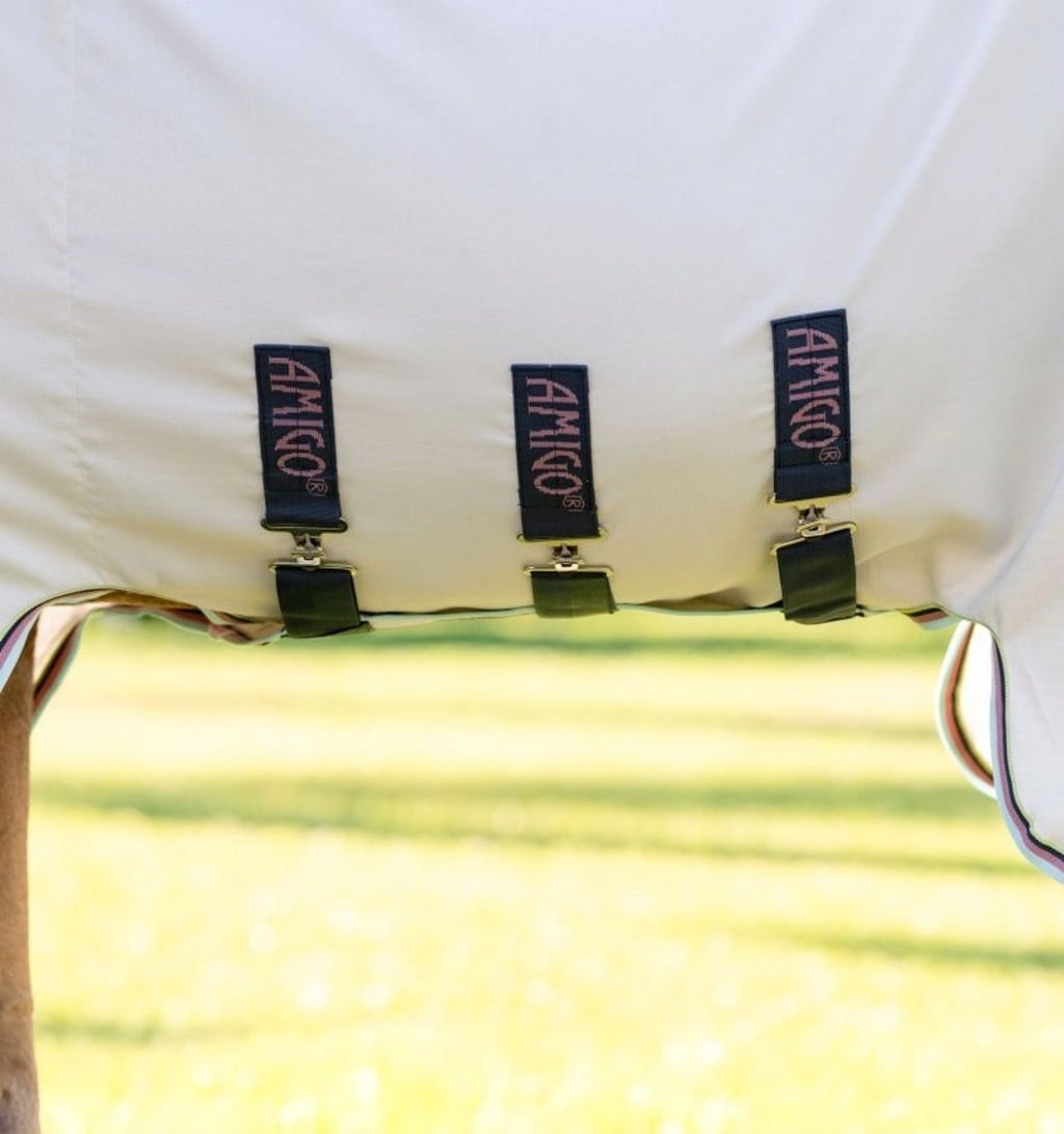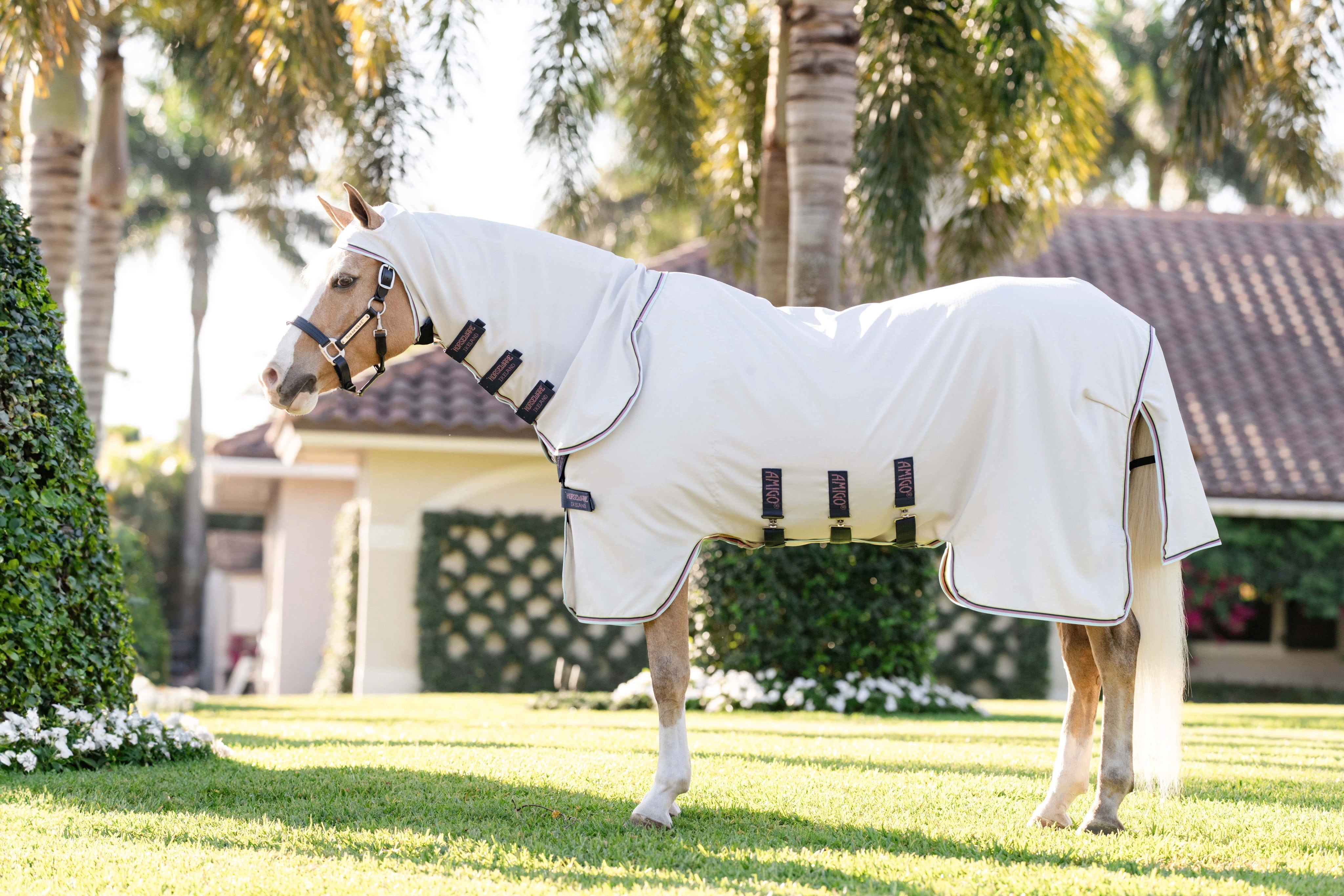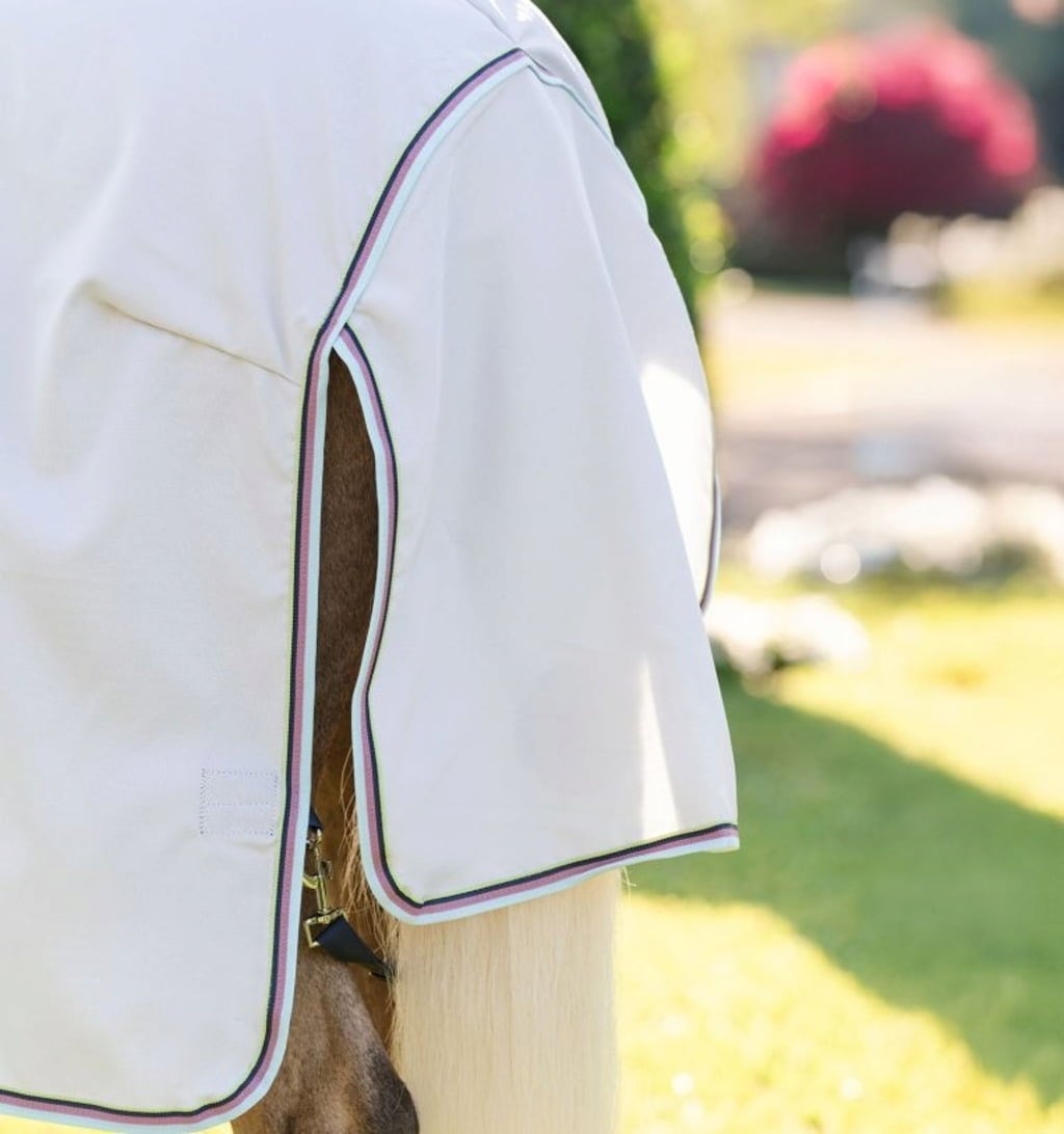 Cette couverture d’été de Horseware Ireland offre à votre cheval une protection efficace contre les UV, les mouches et les insectes, tout en garantissant une liberté de mouvement maximale. Le polyester Ripstop 600D respirant et résistant possède un facteur de protection UV de 90 %, tandis que le couvre-cou intégré assure une couverture complète. Une doublure en polyester soyeux au niveau de la crinière, des épaules et du rabat de queue réduit les frottements.