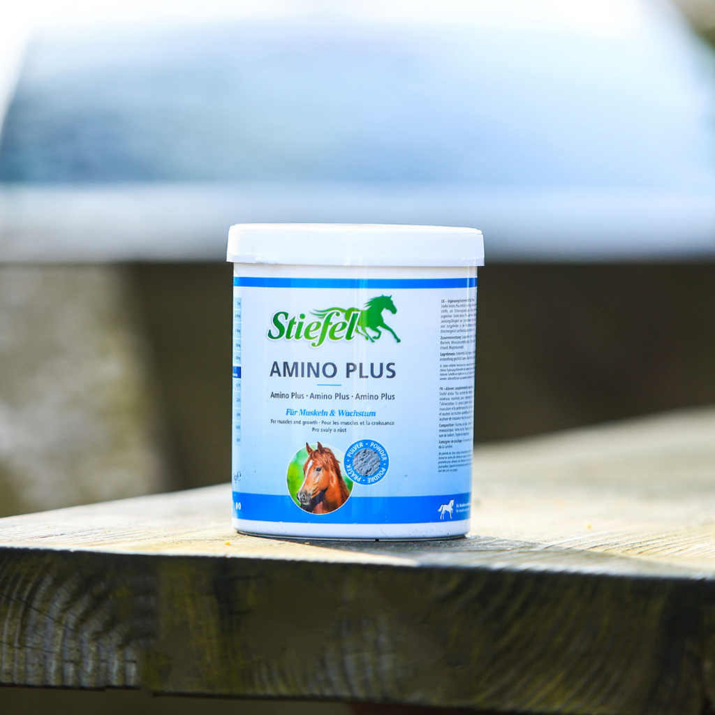NOUVELLE FORMULE. Stiefel Amino Plus contient des acides aminés essentiels et des minéraux pour compenser les carences alimentaires. Stiefel Amino Plus favorise le développement musculaire et les performances des chevaux de sport, et soutient le développement de la structure osseuse et musculaire des poulains et des jeunes chevaux en pleine croissance.