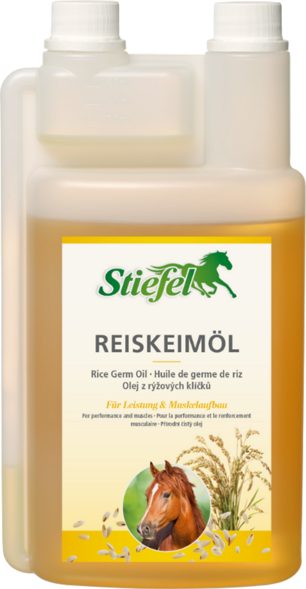 L'huile de germe de riz Stiefel est utilisée pour améliorer la ration alimentaire quotidienne des chevaux de sport et de compétition ainsi que des chevaux à alimentation lourde. L'huile de goût neutre, est riche en acides gras essentiels ainsi qu'en gamma-oryzanol et en vitamine E. Le cheval ne peut pas produire lui-même les acides gras essentiels qui doivent être ingérés par la nourriture. Le gamma-oryzanol peut augmenter le niveau de testostérone et donc les performances. La vitamine E peut empêcher la formation de radicaux libres et a un effet antioxydant. C'est également une vitamine importante pour le métabolisme musculaire qui soutient la régénération des cellules musculaires après l'effort.
