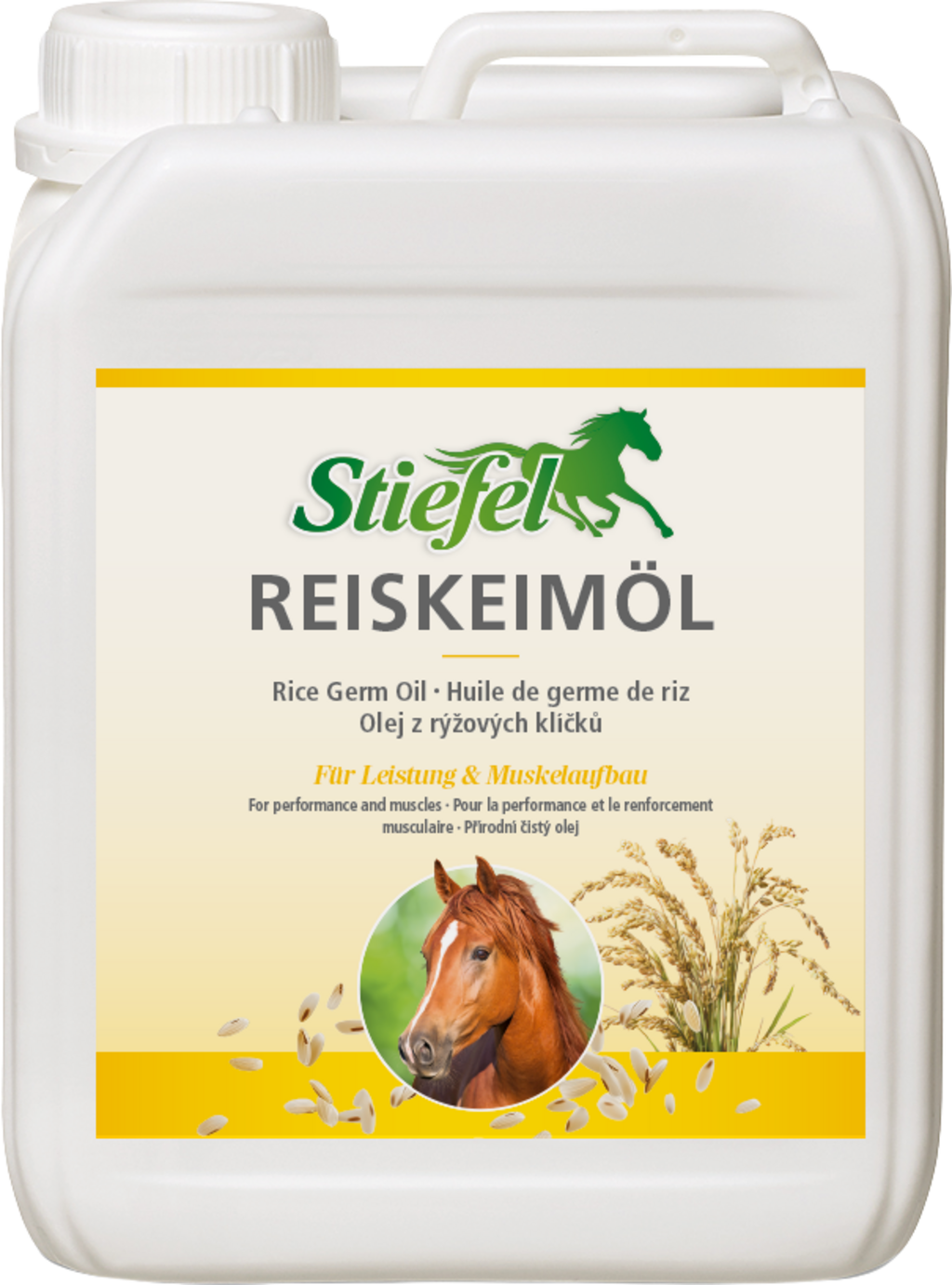 L'huile de germe de riz Stiefel est utilisée pour améliorer la ration alimentaire quotidienne des chevaux de sport et de compétition ainsi que des chevaux à alimentation lourde. L'huile de goût neutre, est riche en acides gras essentiels ainsi qu'en gamma-oryzanol et en vitamine E. Le cheval ne peut pas produire lui-même les acides gras essentiels qui doivent être ingérés par la nourriture. Le gamma-oryzanol peut augmenter le niveau de testostérone et donc les performances. La vitamine E peut empêcher la formation de radicaux libres et a un effet antioxydant. C'est également une vitamine importante pour le métabolisme musculaire qui soutient la régénération des cellules musculaires après l'effort.