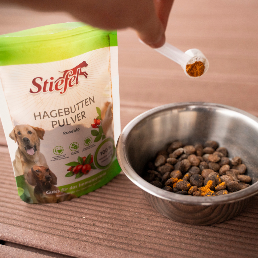 Les cynorrhodons, ou églantiers, proviennent de la fleur blanche du rosier. Ils ont une teneur élevée en vitamine C et en minéraux et peuvent donc contribuer à renforcer le système immunitaire et les défenses naturelles du chien. Cette poudre est le complément idéal pour les chiens qui ne consomment pas d'aliments frais.