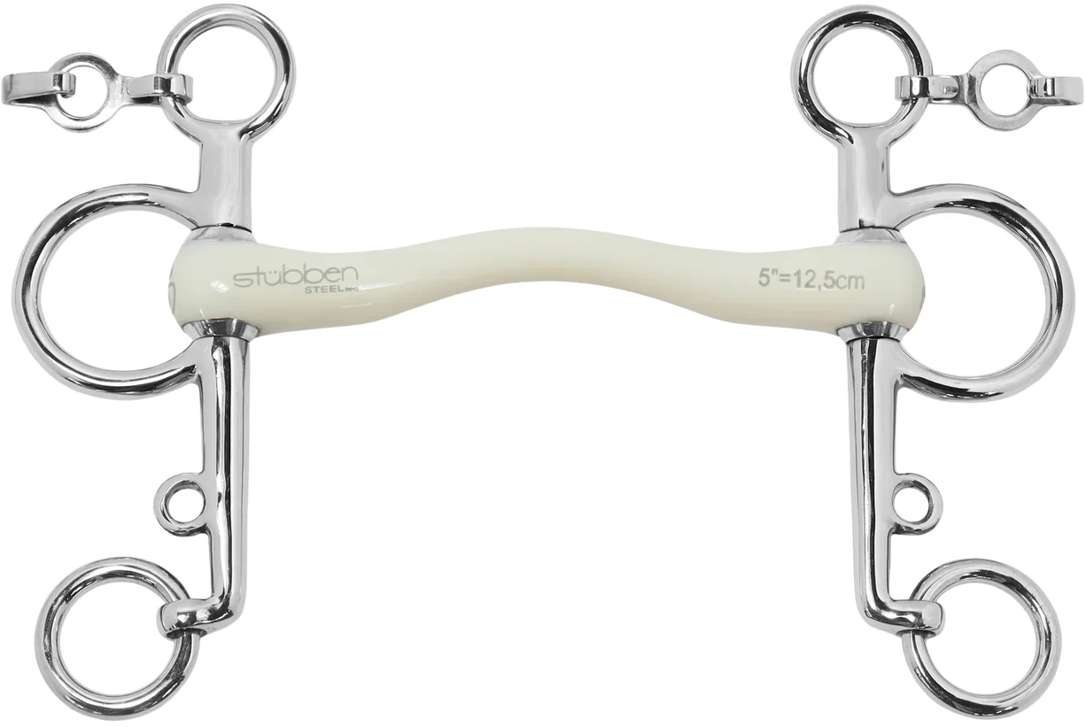 La fabrication en acier inoxydable robuste et en matière plastique assure une grande durabilité ainsi qu’une surface lisse, mettant le confort du cheval au premier plan. La gourmette fournie permet d’ajuster individuellement la pression, afin d’adapter l’action du mors de manière précise aux besoins du cheval. Ce produit constitue un choix idéal pour les cavaliers et cavalières attachés à la qualité de fabrication et aux détails fonctionnels.