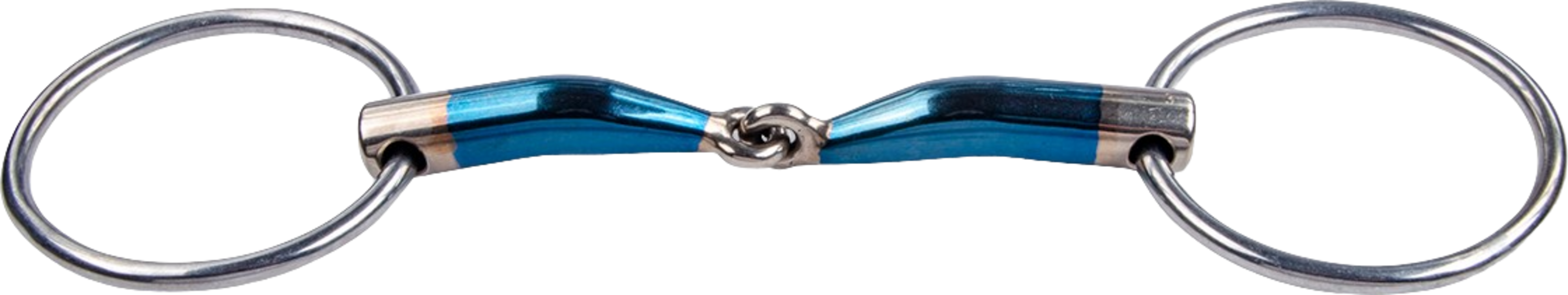 Les mors en acier doux, facilement reconnaissables à leur couleur bleu vif, sont conçus pour réagir au contact de l’humidité (comme l’air ambiant) en développant une fine couche de rouille superficielle. Ce processus naturel confère au mors un goût sucré qui stimule la salivation, facilitant ainsi l’acceptation du mors par le cheval.