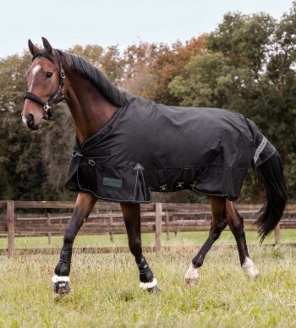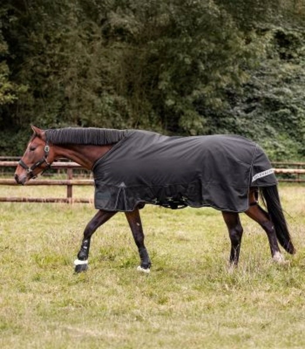 Dotée d’un matériau extérieur Ripstop 1200 deniers particulièrement résistant à la déchirure, cette couverture est à la fois extrêmement durable, totalement imperméable et hautement respirante. Le cheval reste ainsi bien au sec, même par temps froid et humide. La doublure intérieure antibactérienne contribue à une hygiène durable. Pour un confort sans compromis, des inserts en mousse au niveau du garrot soulagent la pression, tandis que la large fente d’aisance permet une liberté de mouvement totale au paddock ou au pré.