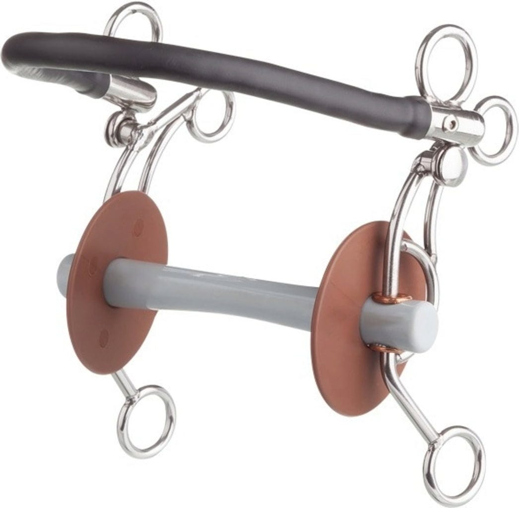- Bijzonder geschikt voor jonge en sensibele paarden, evenals voor paarden die te gevoelig reageren op enkel een bit, maar met alleen een hackamore niet te rijden zijn.