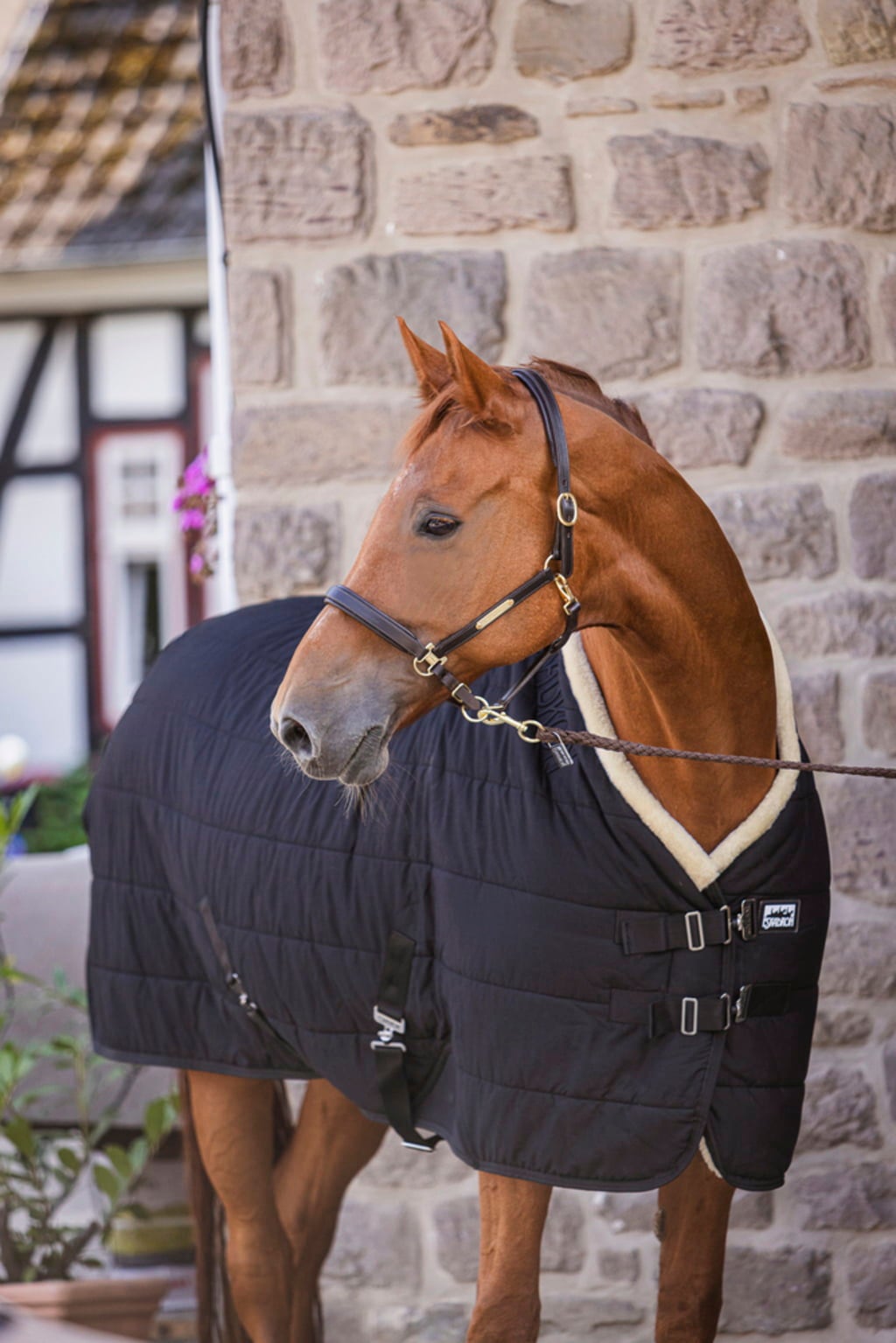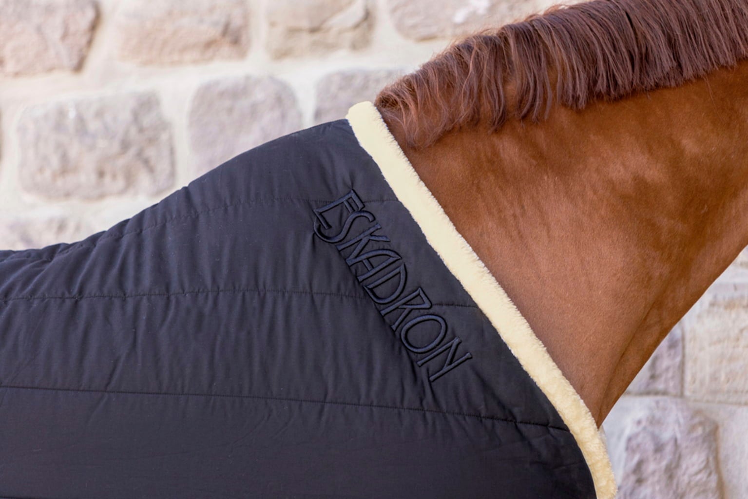 Geef je paard behaaglijke warmte en bescherming in de stal met de stal- en onderdeken van Eskadron. De deken is gemaakt van hoogwaardig katoen en heeft een zachte voering van imitatiebont. Met 100 g vulling is hij aangenaam licht en biedt hij bewegingsvrijheid. Praktische details zoals de verstelbare borst met T-sluitingen, afneembare kruissingels en elastiek op de schouders zorgen voor een perfecte pasvorm en voorkomen schuren. De smalle kraag van imitatiebont beschermt de nek.