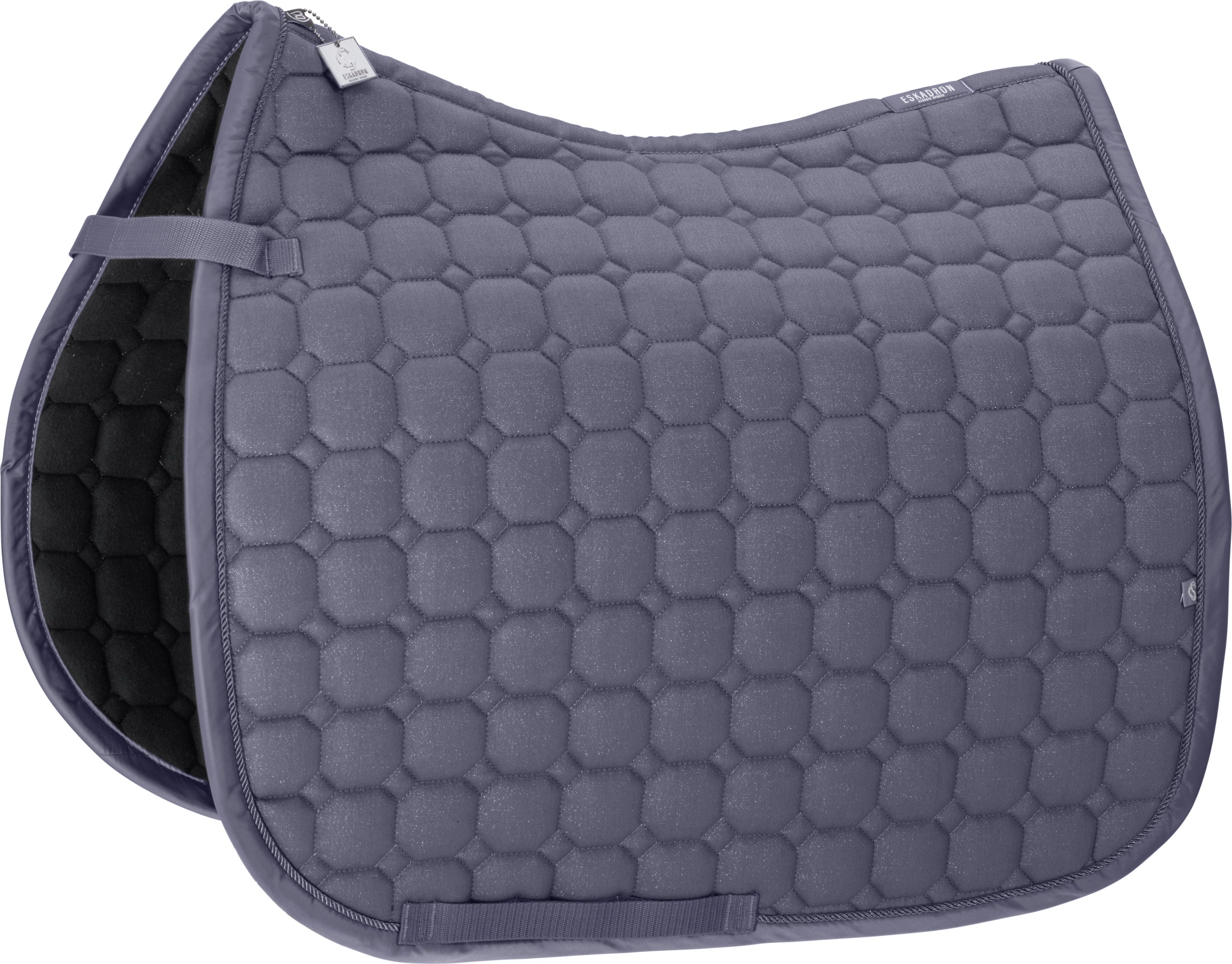 Houd je van de natuurlijke uitstraling van katoen, maar wil je toch een vleugje glamour? De zadeldeken Cotton Glitter combineert een fonkelend glitter-bovenmateriaal met een vachtvriendelijke molton-onderzijde. De compacte stiksels zorgen voor een perfecte ligging onder het zadel, terwijl het ton-sur-ton koord het design harmonieus afrondt.