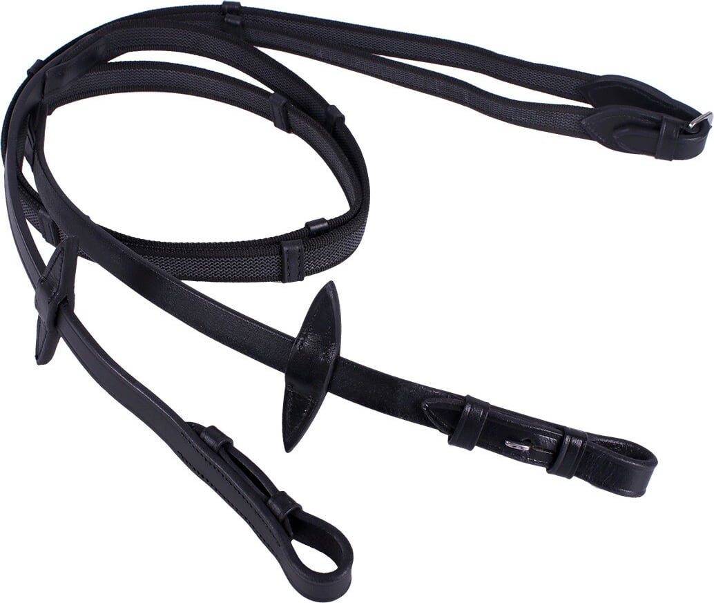 - Veilige grip: Het rubberen oppervlak met netachtig patroon zorgt voor optimale houvast en voorkomt dat de teugels door de handen glijden.