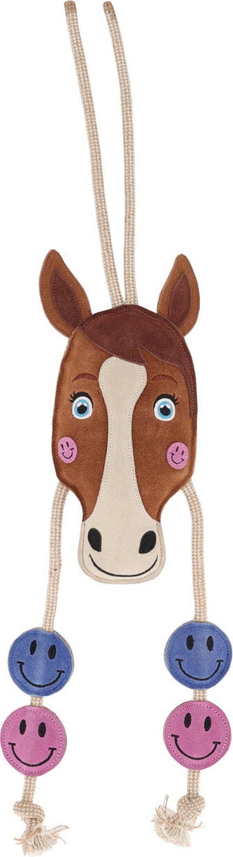 Het paardenspeelgoed Rosalynn brengt kleur en afwisseling direct in de stal van je paard. Met zijn milieuvriendelijke vulling van kokosvezels en de robuuste katoenen touwen nodigt het uit tot knabbelen en spelen, wat verveling en stress effectief vermindert. Dankzij de stevige lus hang je deze vrolijke blikvanger eenvoudig op de plek waar je paard behoefte heeft aan een speelse bezigheid.