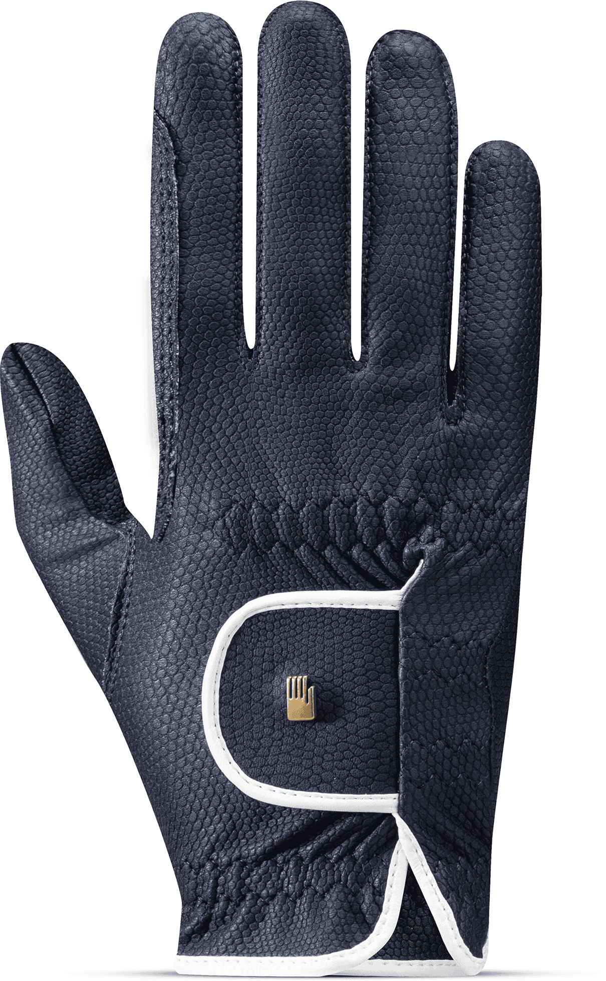 De bies in contrasterende kleuren en de gestileerde ROECKL-hand op de handrug geven deze handschoen zijn aantrekkelijke uitstraling. Het ziet er niet alleen geweldig uit, het maakt ook indruk met zijn superieure materiaal en slijtvaste eigenschappen. Het exclusieve materiaal ROECK-GRIP® maakt het bijzonder ademend, elastisch en soepel en geeft het een uitstekende pasvorm. Daarnaast kenmerkt de handschoen zich ook door extreme grip en gevoeligheid aan de teugels. De handmatige productie met een maximale naadtolerantie van één millimeter, en unieke snitten en verhoudingen dragen ook aanzienlijk bij aan de hoge kwaliteit van deze handschoenen.