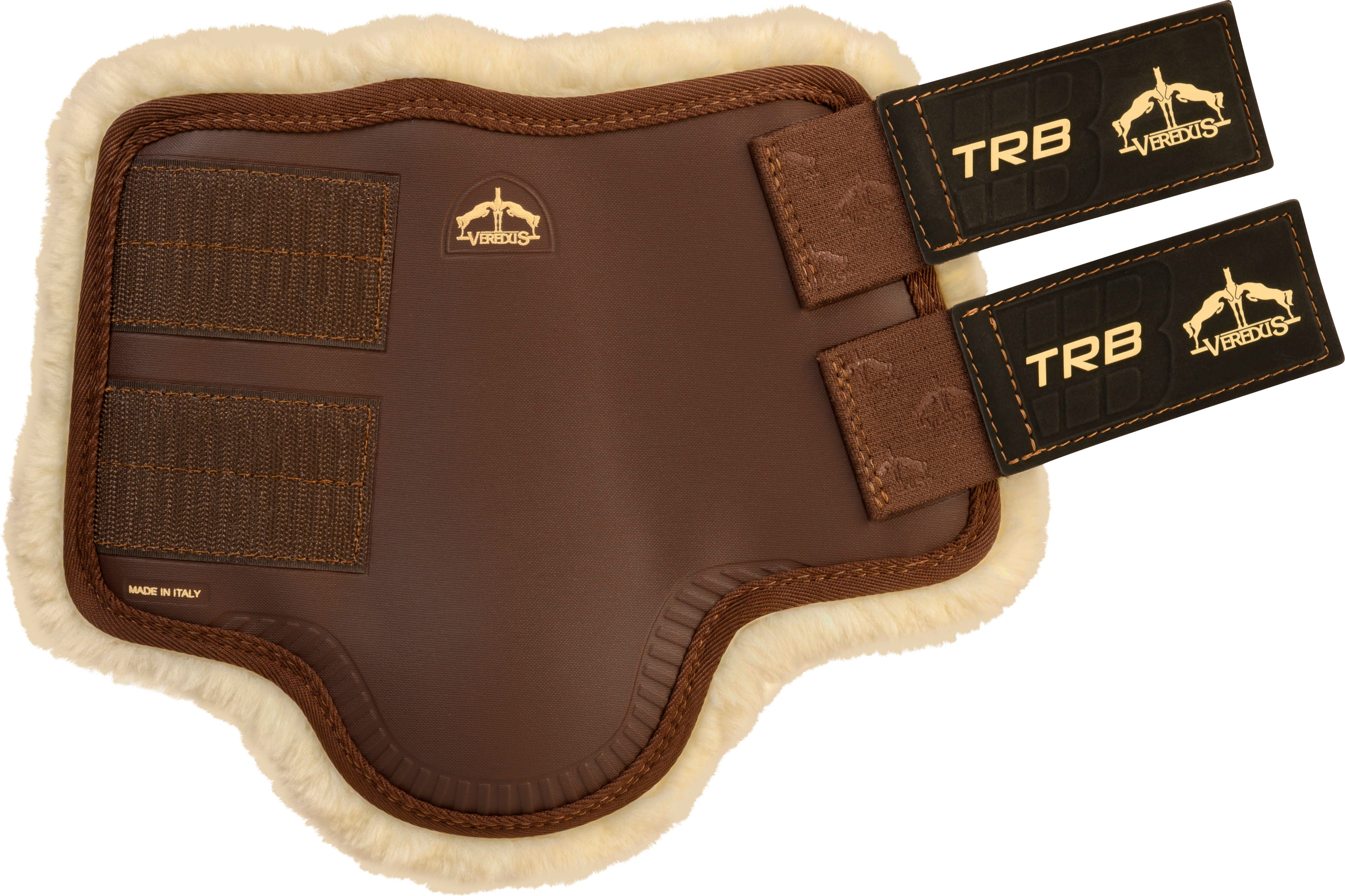 Met de TRB beenschermers van VEREDUS in de kleur bruin kies je voor een echte allrounder die jou en je paard trouw begeleidt in het dagelijkse stalgebruik. Deze in Italië gemaakte beenschermers combineren een anatomische pasvorm met eersteklas materialen, speciaal afgestemd op de hoge eisen tijdens training, op de weide of aan de longe.