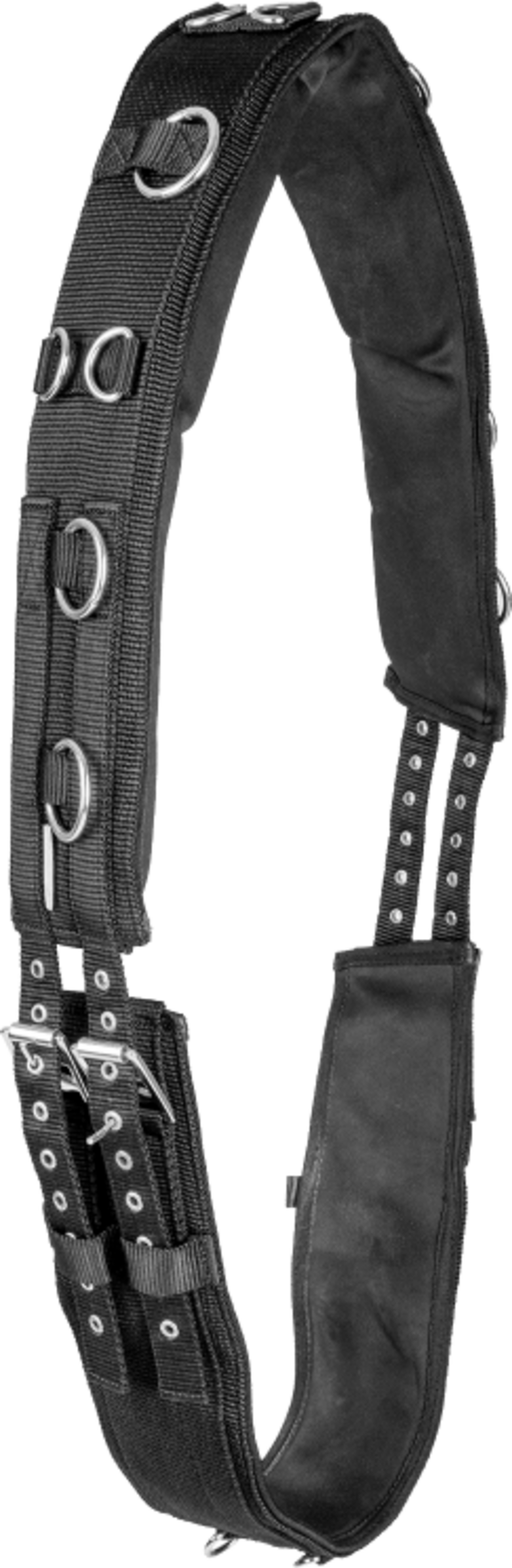 Een speciaal hoogtepunt voor iedereen die waarde hecht aan stijl: het beslag is afgewerkt in elegant zilver, wat de singel een luxe uitstraling geeft. Functioneel heeft de singel 12 strategisch geplaatste ringen waarmee je de longeerlijn en hulpteugels flexibel en individueel kunt organiseren.
