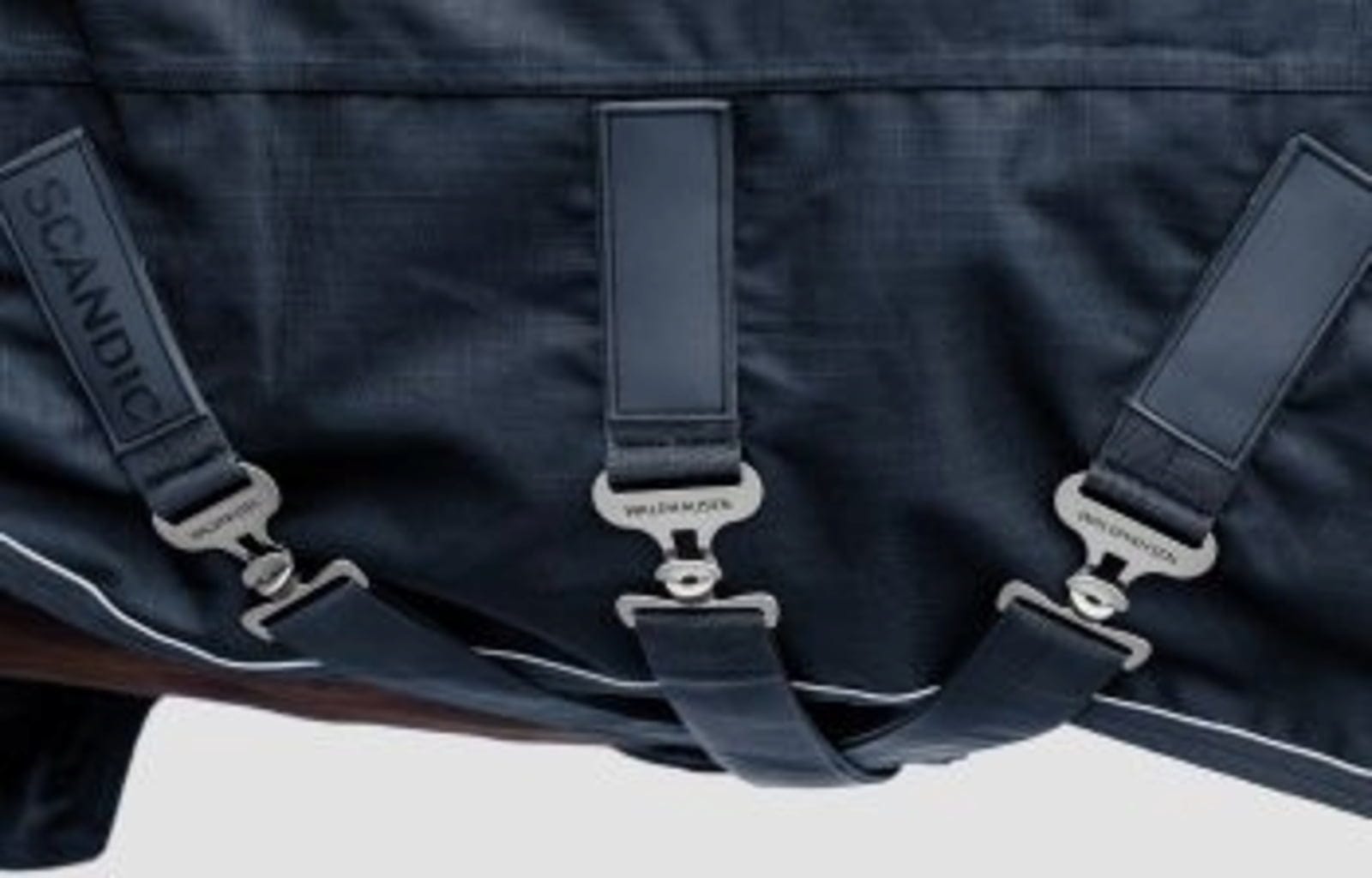Ook op het gebied van functionaliteit scoort de Scandic deken hoog. De innovatieve V-frontsluiting en drie stevige buikriemen zorgen voor een veilige en comfortabele pasvorm. De extra grote staartflap met reflecterende opdruk verhoogt de zichtbaarheid in de schemering. Praktisch voor jou: het Stay Clean Inlay houdt de deken schoon tijdens het passen.
