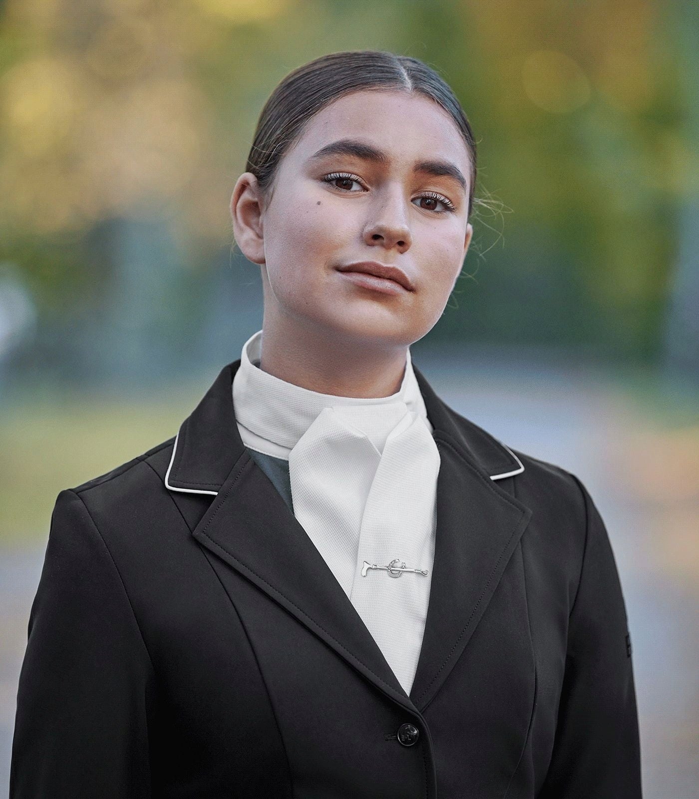 Voor een stijlvolle en tegelijk eigentijdse uitstraling tijdens wedstrijden is deze plastron van Waldhausen de perfecte keuze.